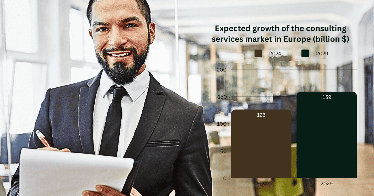 The European consulting services market has experienced remarkable growth in recent years. In 2024, the market is expected to reach a total value of $126.5 billion. It is projected to grow at a compound annual growth rate (CAGR) of 4.29% through 2029. This growth is driven by the increasing complexity of business environments and the need for specialised expertise. Key sectors include digital transformation, risk management, and strategy. Consulting firms provide technical know-how and strategic insights that are essential for businesses.